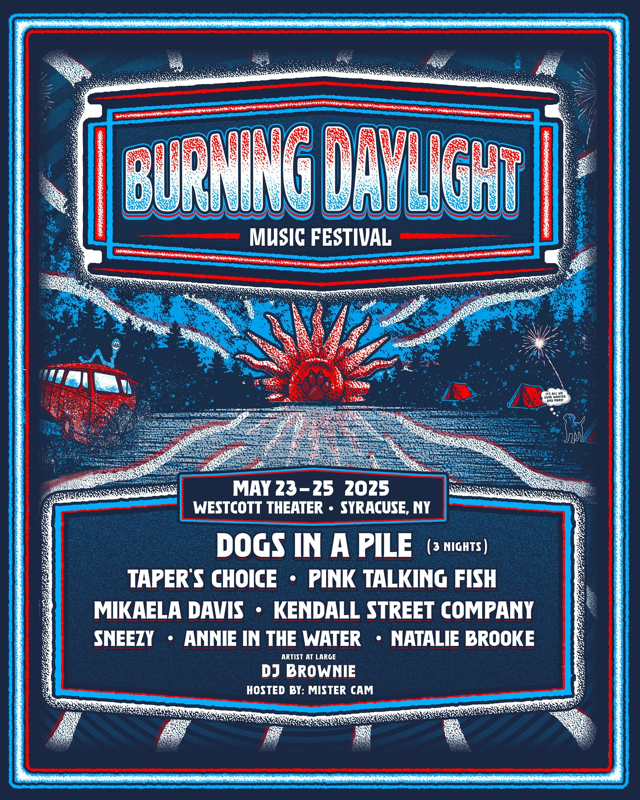 • A musician on stage playing a keytar with colorful lights and fog in the background. The performer is wearing reflective clothing and platform boots.